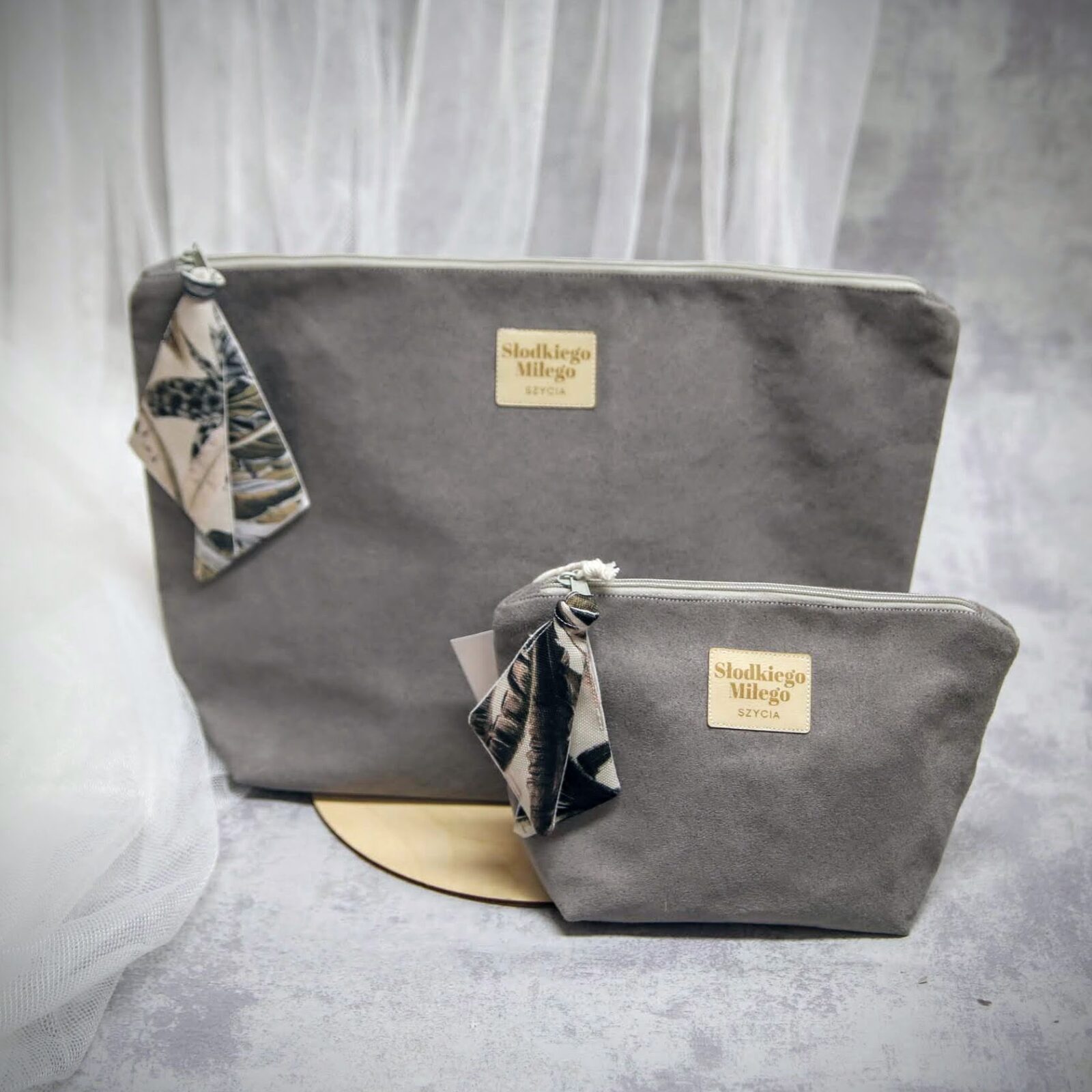 Kosmetyczki uszyte są tak, że można je kompletować w zestawy, dzięki temu będą pięknym i praktycznym upominkiem. Przykładowe zestawy widać na zdjęciach. Kosmetyczki sprzedawane są osobno.