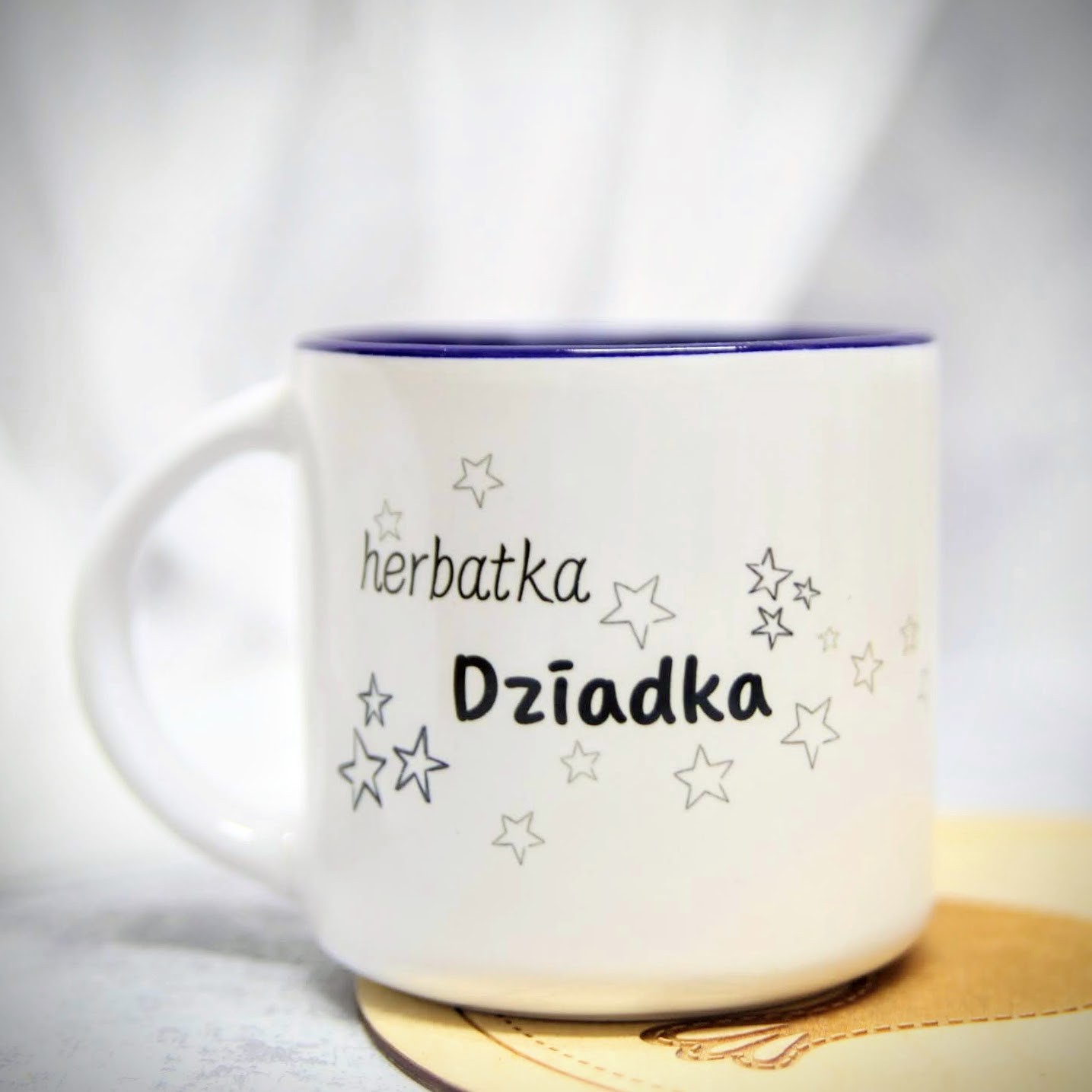 - Uroczy napis – „Herbatka Dziadziusia” sprawia, że każdy łyk staje się jeszcze bardziej wyjątkowy.