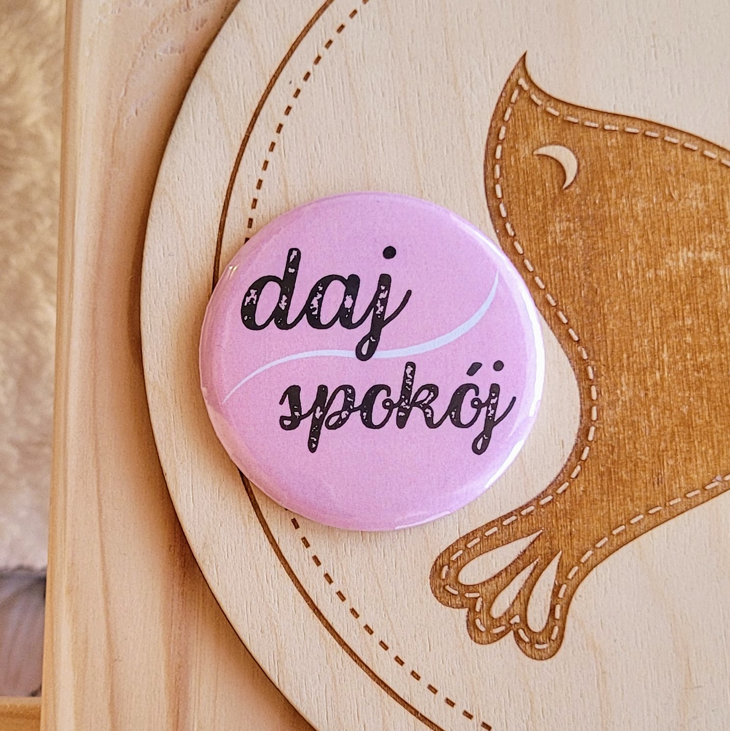 Podkreśl swój humorystyczny styl dzięki uroczemu różowemu magnesowi z zabawnym napisem „Daj Spokój”.