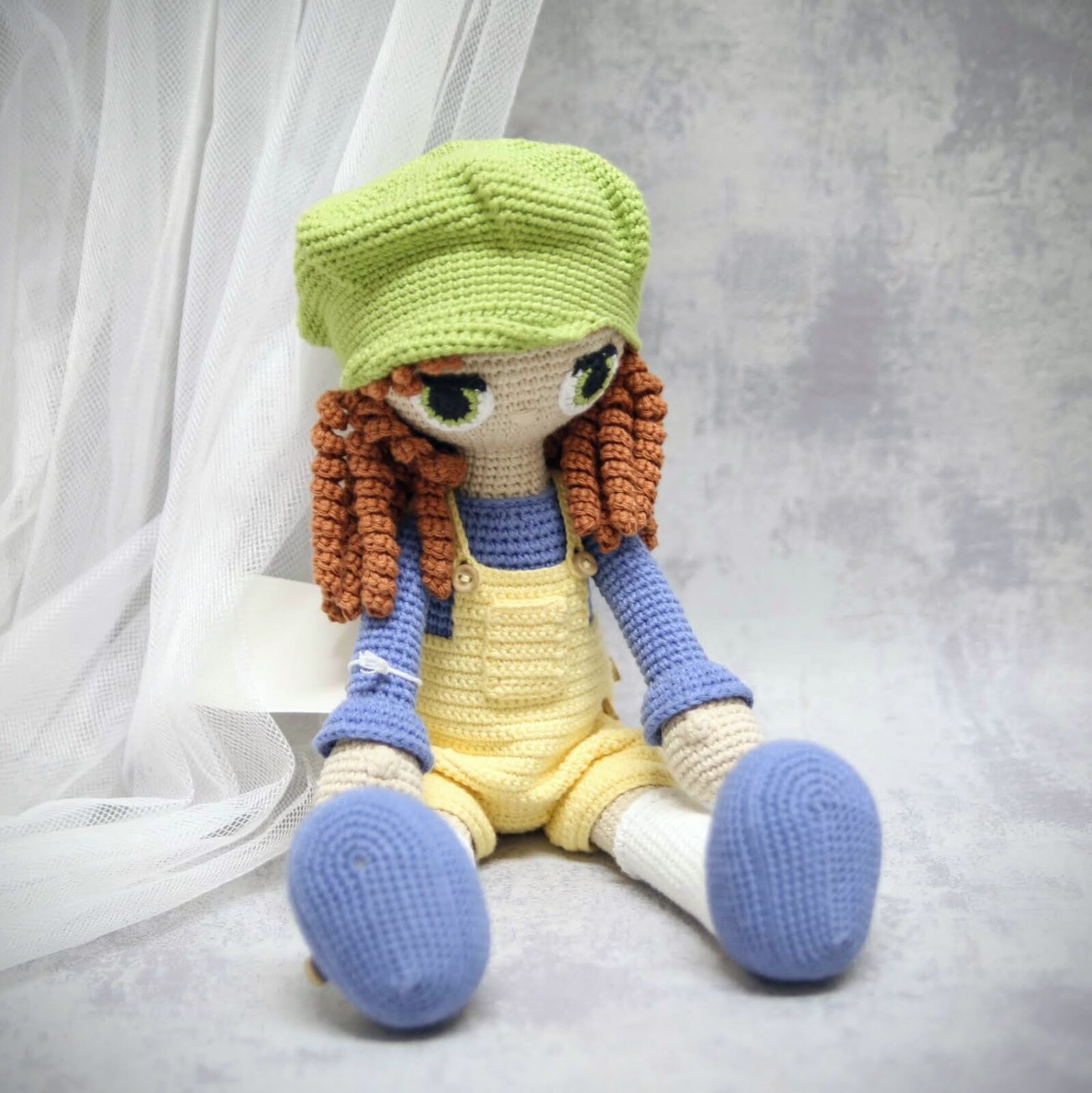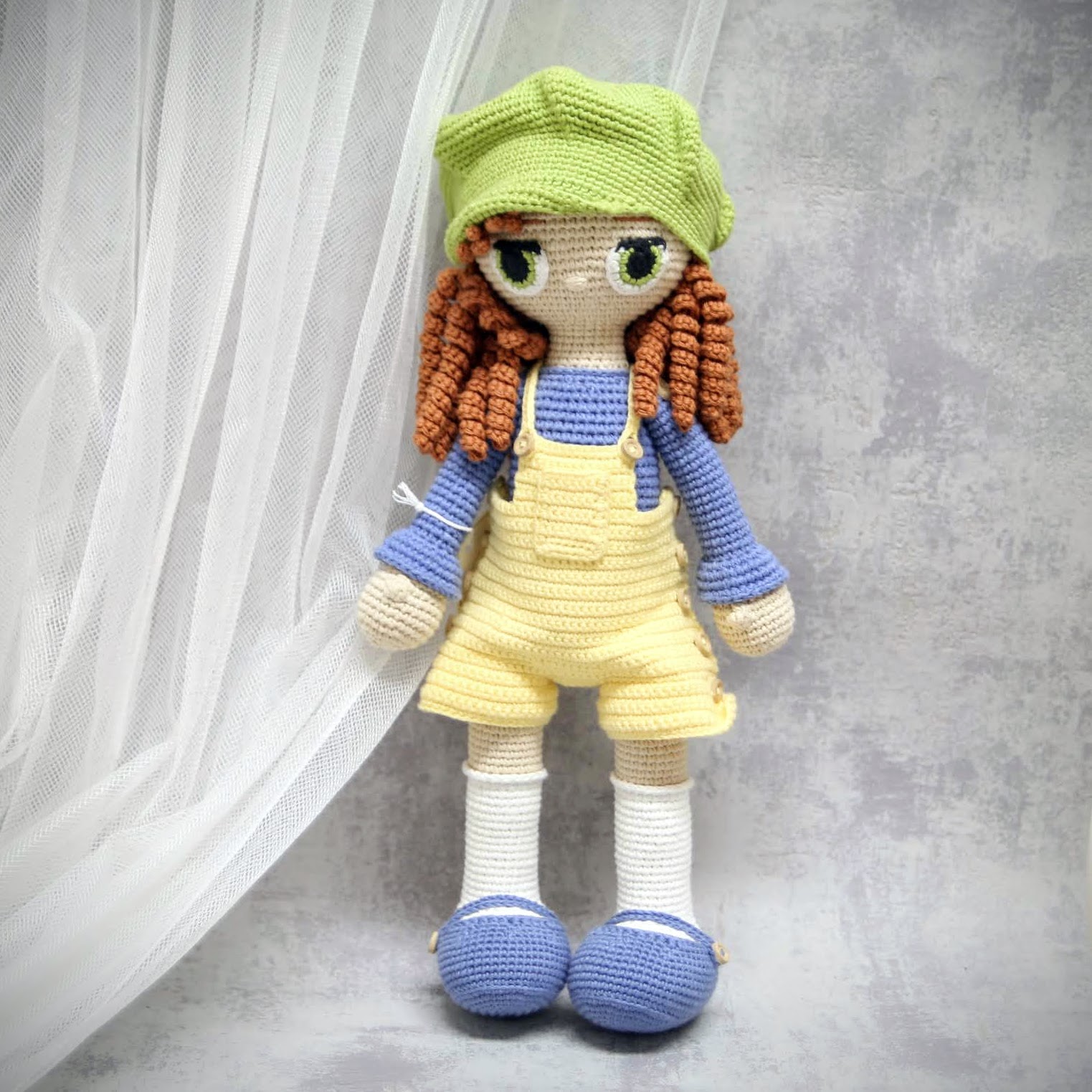 Lalka z kolekcji Inga to wyjątkowa, duża zabawka wykonana ręcznie w technice szydełkowej, z najwyższej jakości naturalnych włóczek bawełnianych.